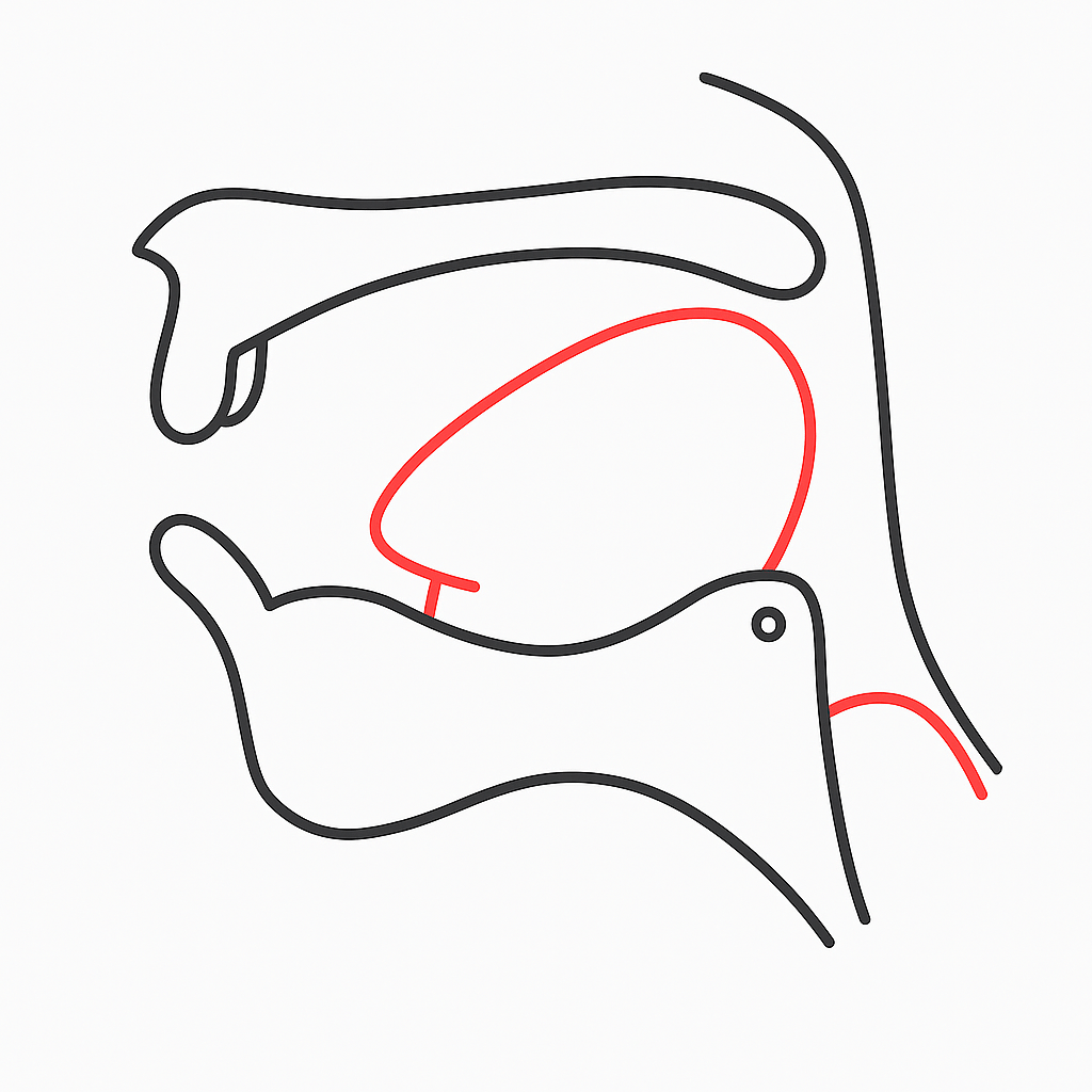At the same time, the back part of the tongue rises from a mid-position in the mouth to a higher position (see diagram below).